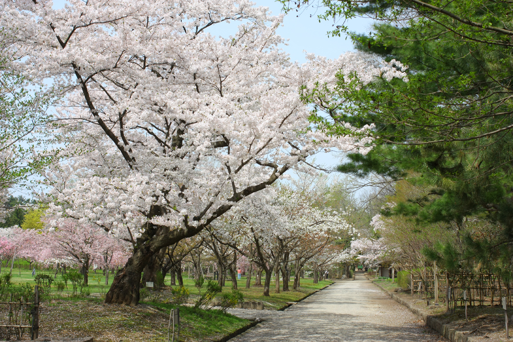 植物園の中の桜は風が吹くたびざわざわとなびき、花弁が風に舞い散る姿も見受けられます。 今、桜吹雪を体験するのであれば、植物園の中がお勧めです。 植物園の中は二の丸四の丸、本丸とくらべやや空いているため、多くの種類の桜を眺めながら、ゆったりとした時間を過ごすことが出来ます。