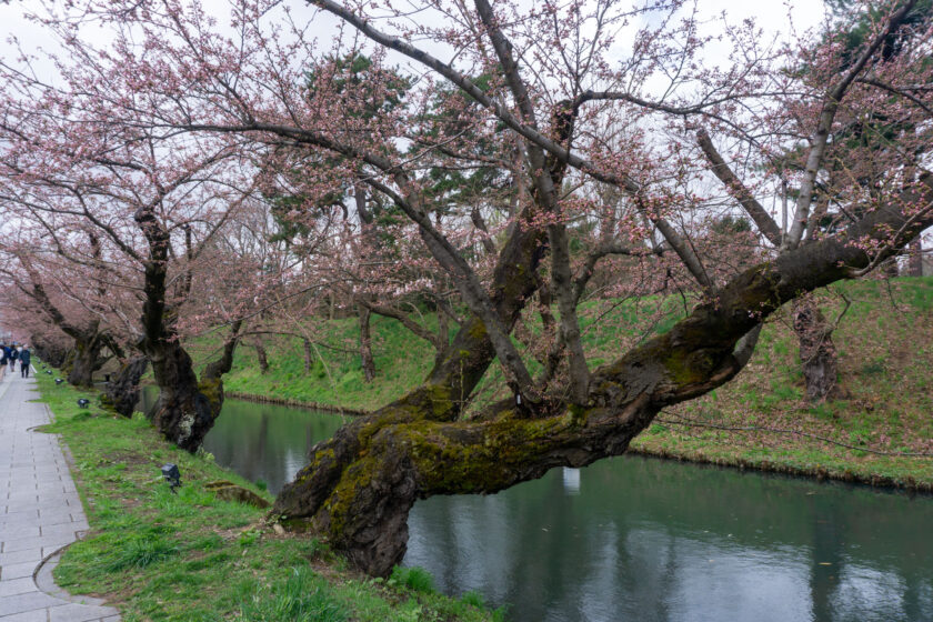 桜の開花予想・開花情報・開花状況【弘前公園 桜定点観測 2026】4月7日 – 外濠のソメイヨシノの桜の様子